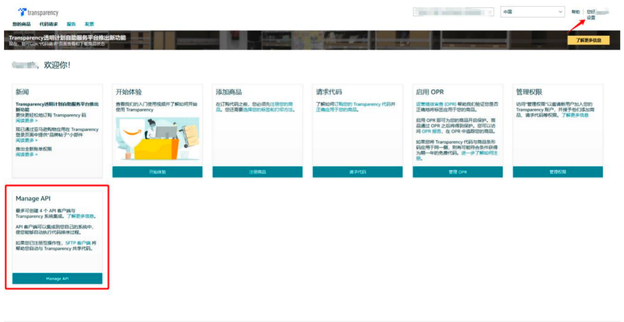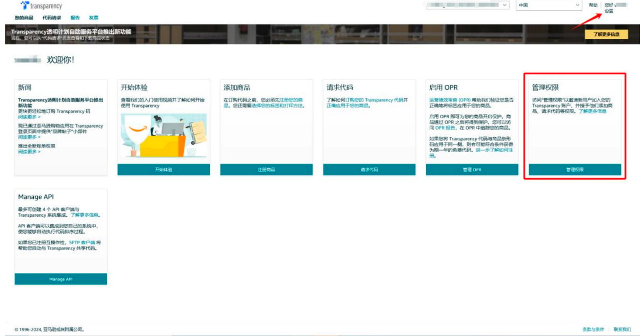 3.3勾选要启用API客户端的品牌(未勾选的品牌将无法通过API Client申请T-Code),然后勾选“管理Transparency代码”。