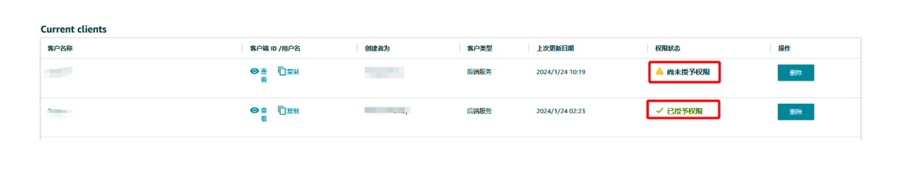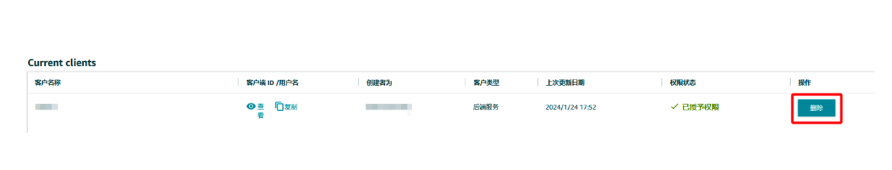 5.2进入「Manage API- Current Clients」中找到要删除的Client,点击删除