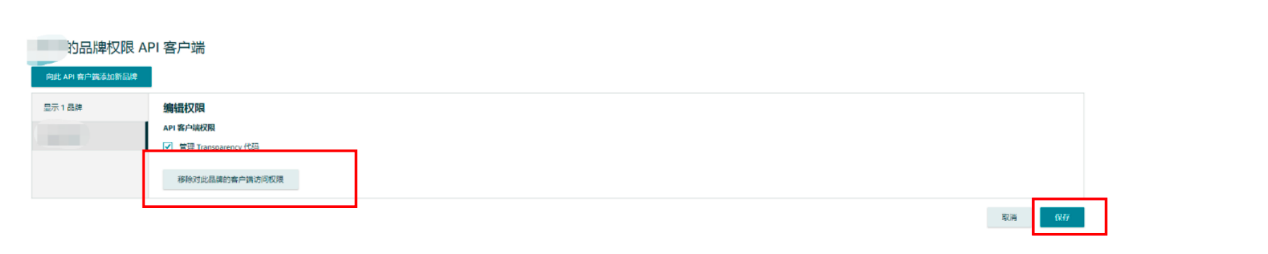 5.1进入「管理权限->当前的API客户端」中找到需要取消权限的API CLient,点击编辑移除品牌对此API客户端的访问权限